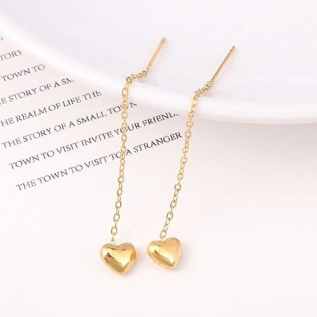 ハートのチェーンピアスになります♡ チェーンなので半分にして垂らして付けてもらっても、ワンポイントのハートだけにして先を垂らして付けてもらっても◎ ◯サイズ◯ サイズ:長さ7.5㎝ ◯素材◯ 素材:ステンレス ◯カラー◯ ・ゴールド ◯内容◯ ・ ピアス×1 | ご購入にあたっての注意 | ▷ご購入頂きました商品のお客様都合でのキャンセル、返品、交換は基本的に行っておりません。 不良等がございましたら、商品の到着より7日以内に(メールアドレス)までお問い合わせくださいませ。 ▷商品の色味等は、できるだけそのままの色になるようにしていますが、閲覧環境などによ。画像とは若干異なる場合がございます。予めご了承ください。 ▷海外からの仕入れのためお届けまでに10日〜2週間程かかります。