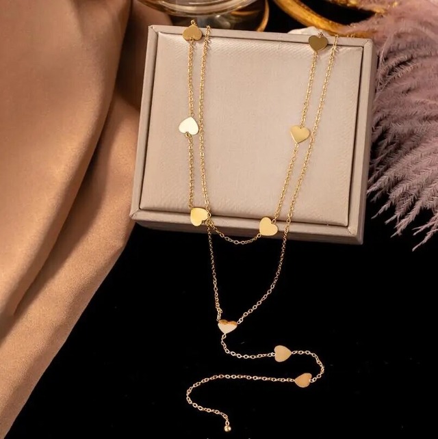 Heart long necklace♡ ダブルのハートがとってもかわいいチェーンのネックレスです♡ チェーンの先にはジルコニアが付いていてキラキラと輝きがデコルテを綺麗に見せてくれます。 ◯サイズ◯ サイズ:40㎝+5㎝ ◯素材◯ 素材:S925・ジルコニア ◯カラー◯ ・ゴールド ・シルバー ◯内容◯ ・ネックレス×1 | ご購入にあたっての注意 | ▷ご購入頂きました商品のお客様都合でのキャンセル、返品、交換は基本的に行っておりません。 不良等がございましたら、商品の到着より7日以内に(メールアドレス)までお問い合わせくださいませ。 ▷商品の色味等は、できるだけそのままの色になるようにしていますが、閲覧環境などによ。画像とは若干異なる場合がございます。予めご了承ください。 ▷海外からの仕入れのためお届けまでに10日〜2週間程かかります。