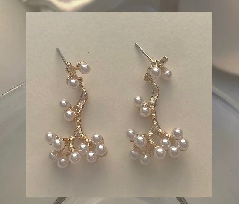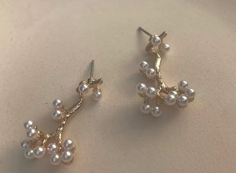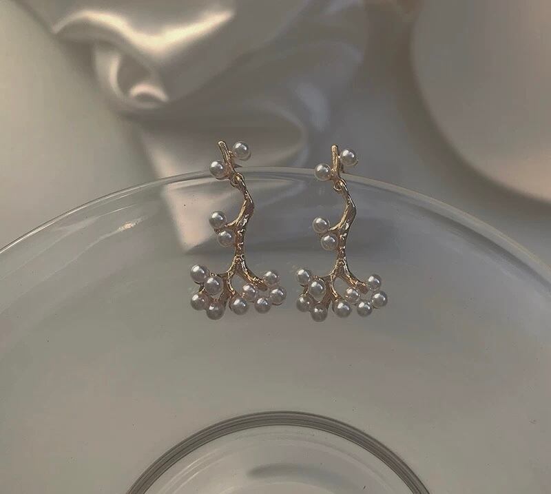 パールが枝分かれしてて一目を引くデザインのピアスになっております♡