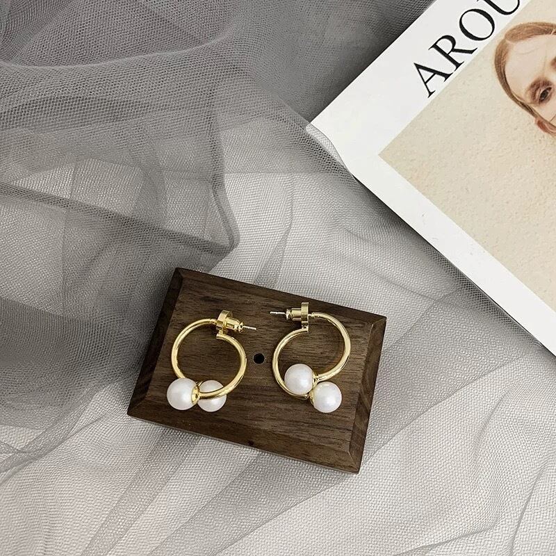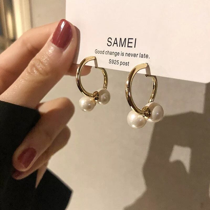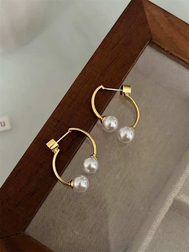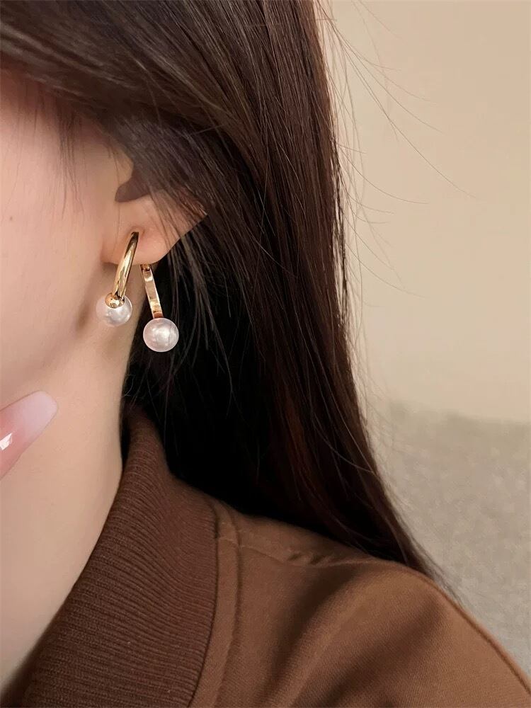 前と後ろのパールで耳に挟む形になってオシャレでかわいいです!