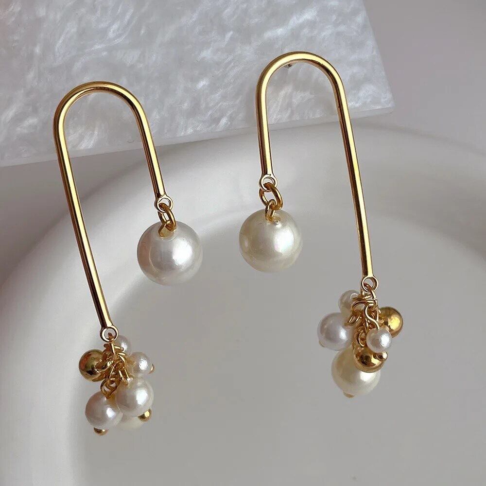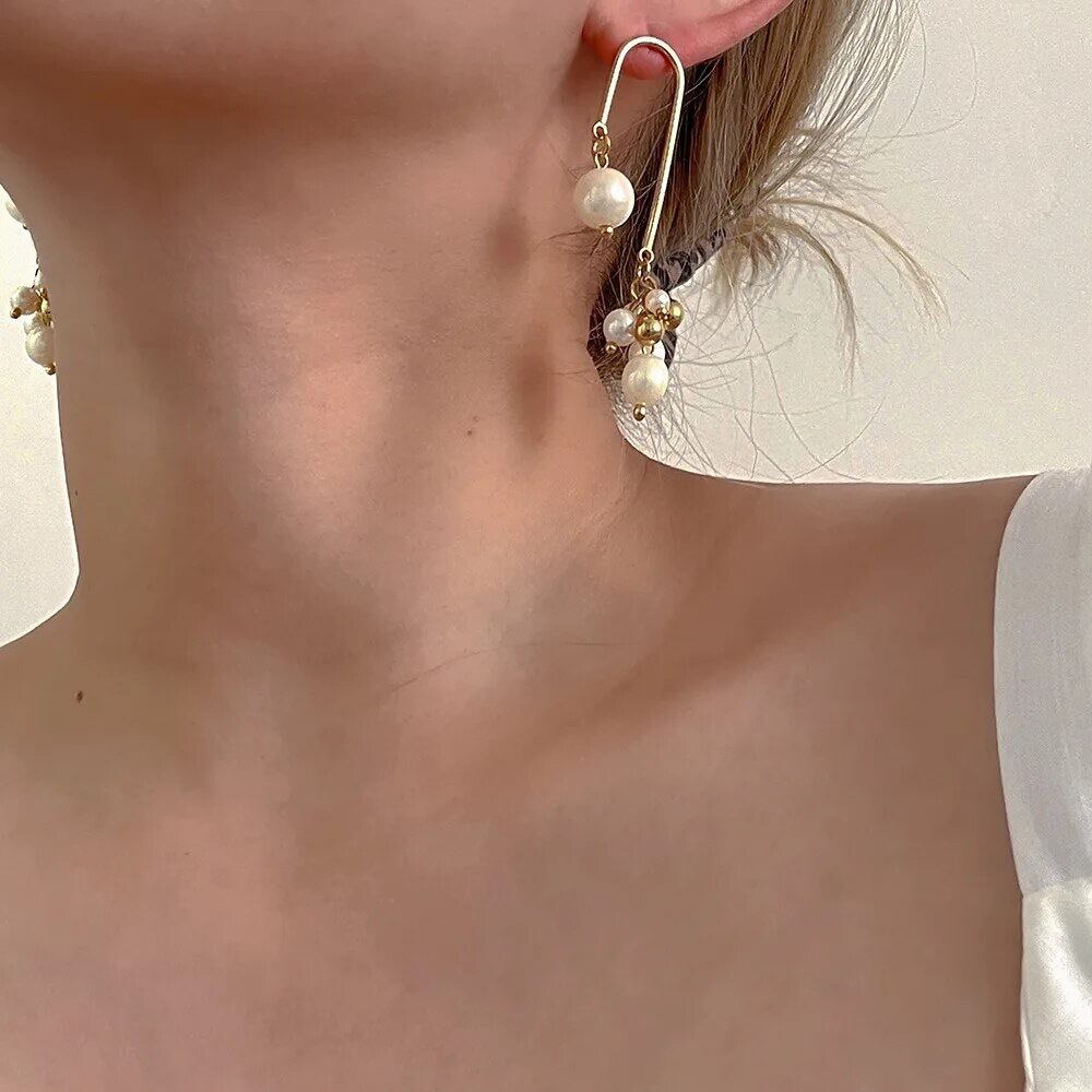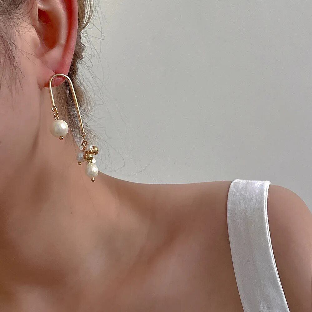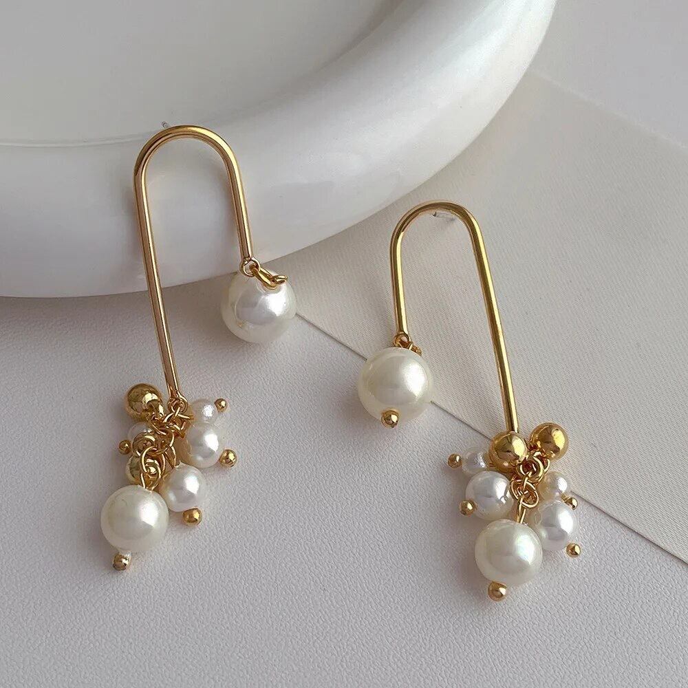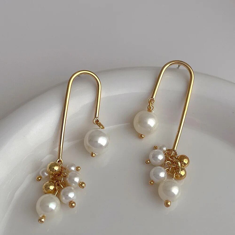 パールとゴールドのボールが散りばめられたオシャレなピアスです!!