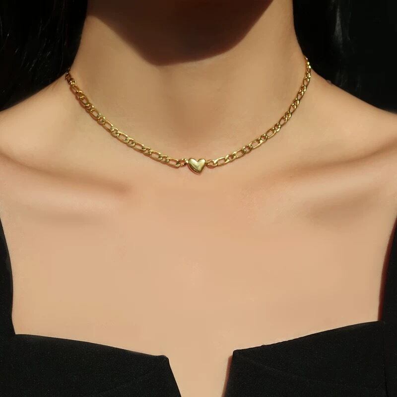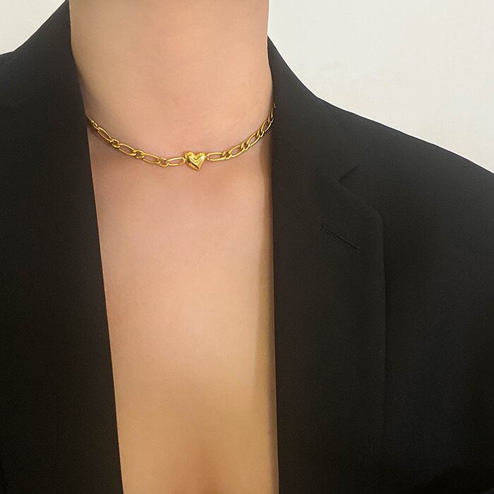 チェーンとハートの組み合わせがとても可愛くて首元を華やかに見せてくれます♡