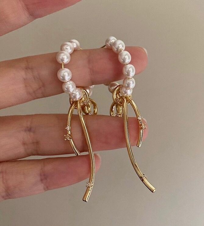 リボンに小さなジルコニアが散りばめられていてキラキラと耳元をエレガントに魅せてくれます♡