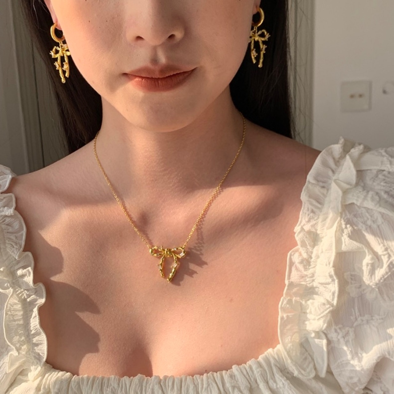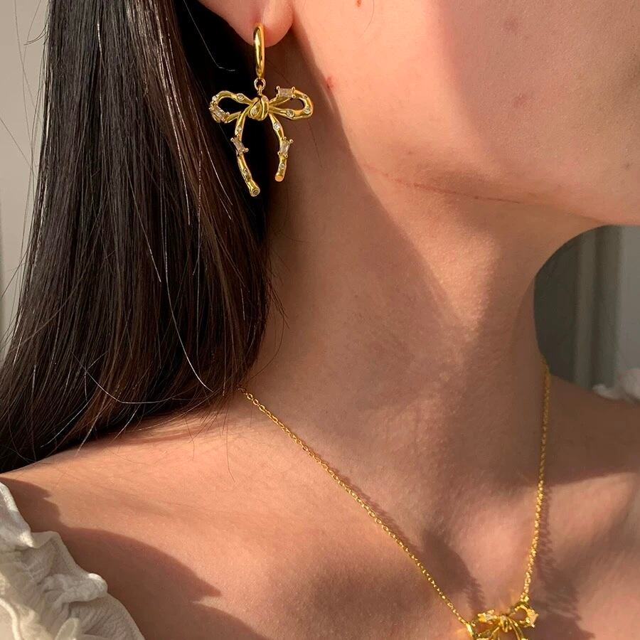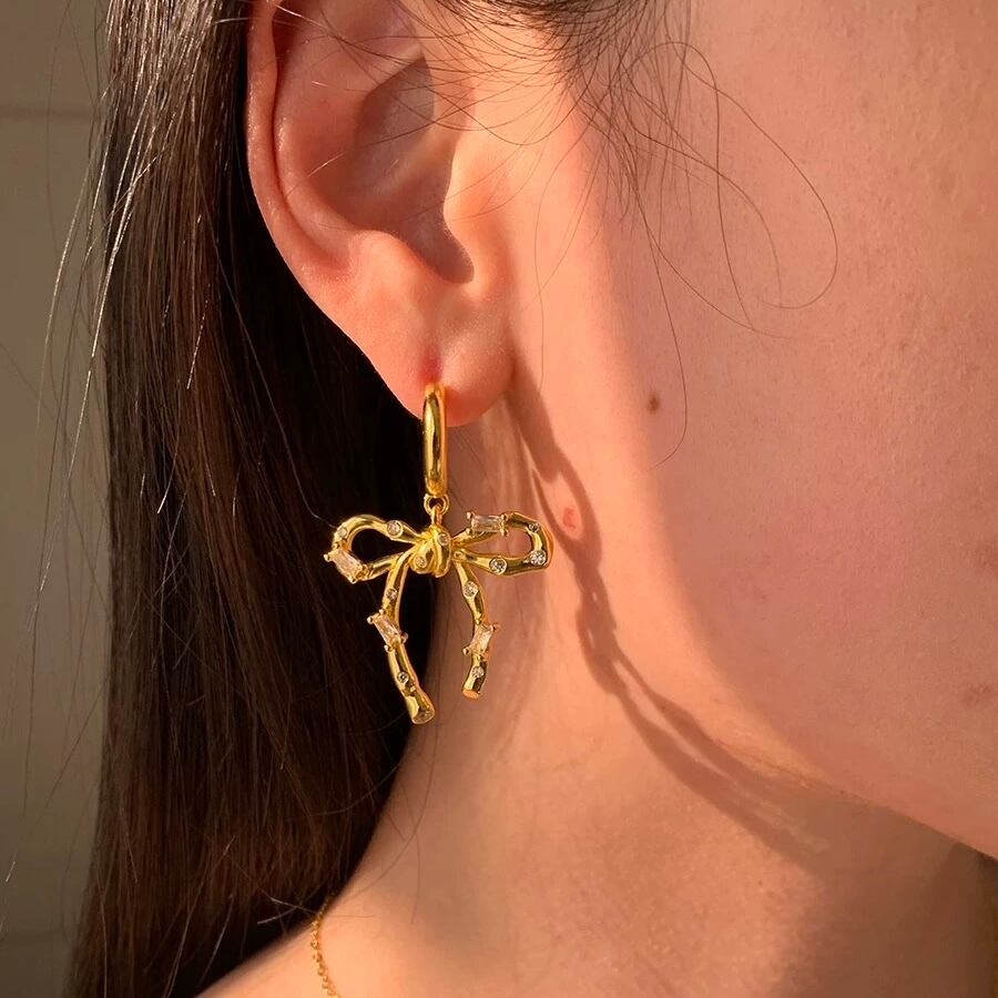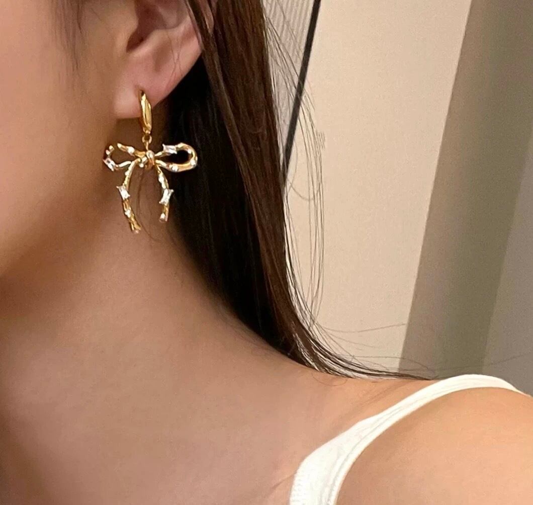 存在感のあるリボンにジルコニアが散りばめられていてキラキラと光ってコーディネートを華やかに魅せてくれます♡