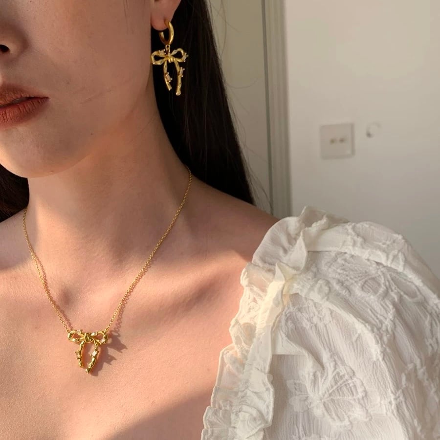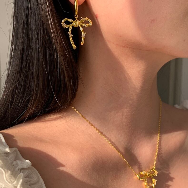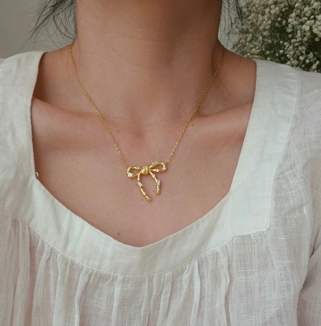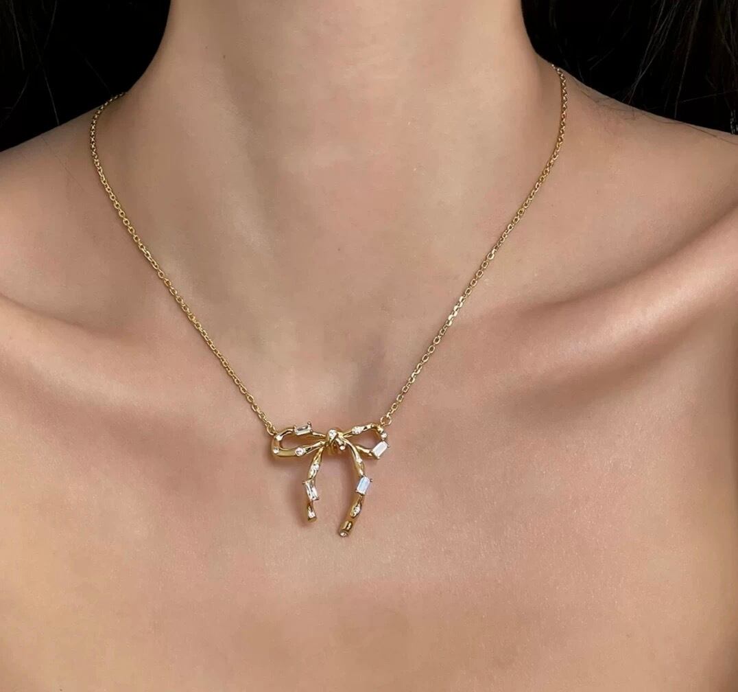 ジルコニアが散りばめられているリボンのネックレスになります♡