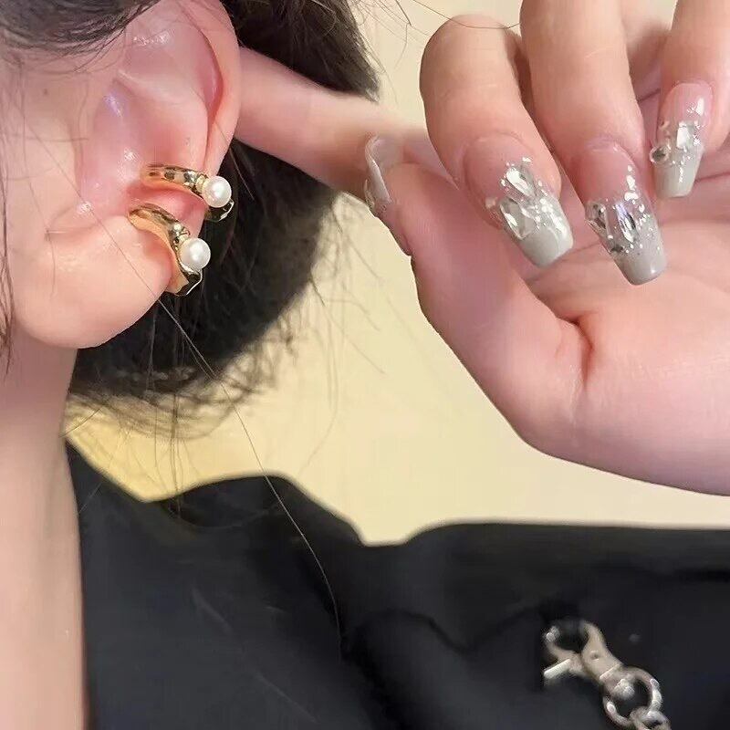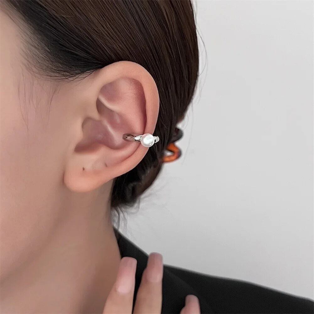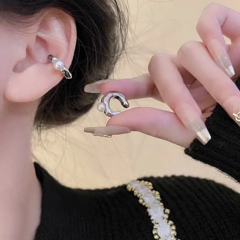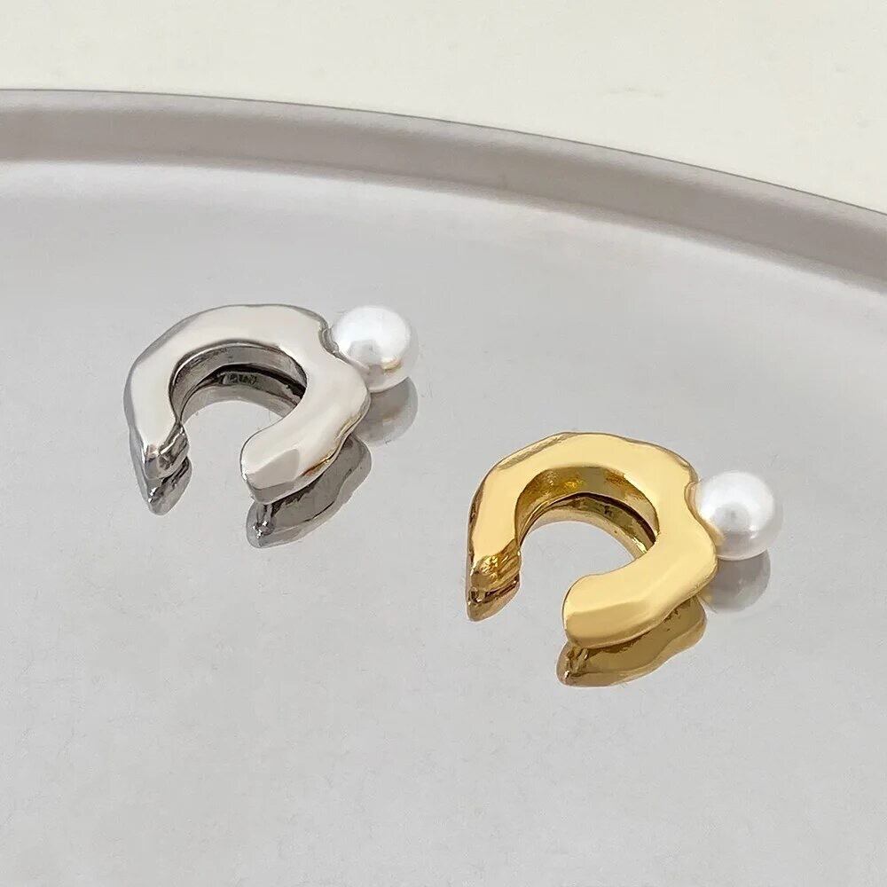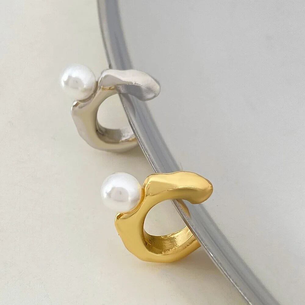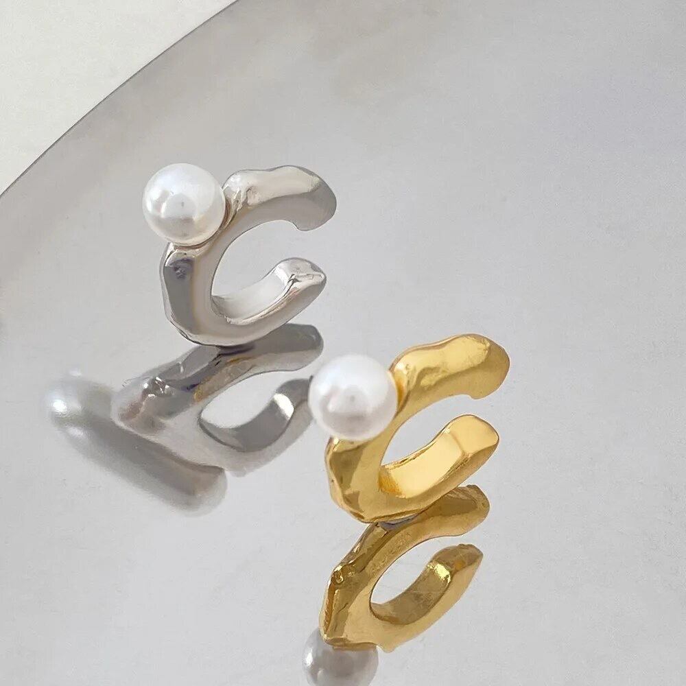 ゴツゴツとしたC型のイヤーカフにパールが付いていて一癖あるオシャレなイヤーカフなので耳元に存在感がでて可愛いです♡