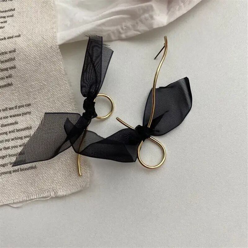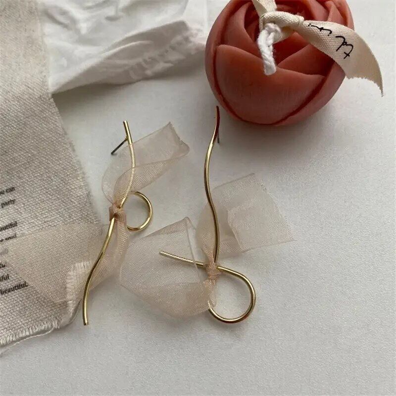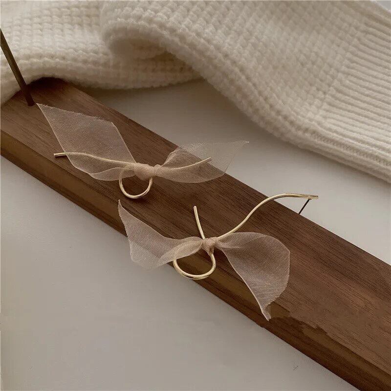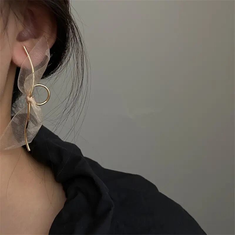 オーガンジー素材のリボンが付いているのでコーデのポイントになって耳元を華やかに見せてくれます♡左右アシンメトリーなピアスになります♪