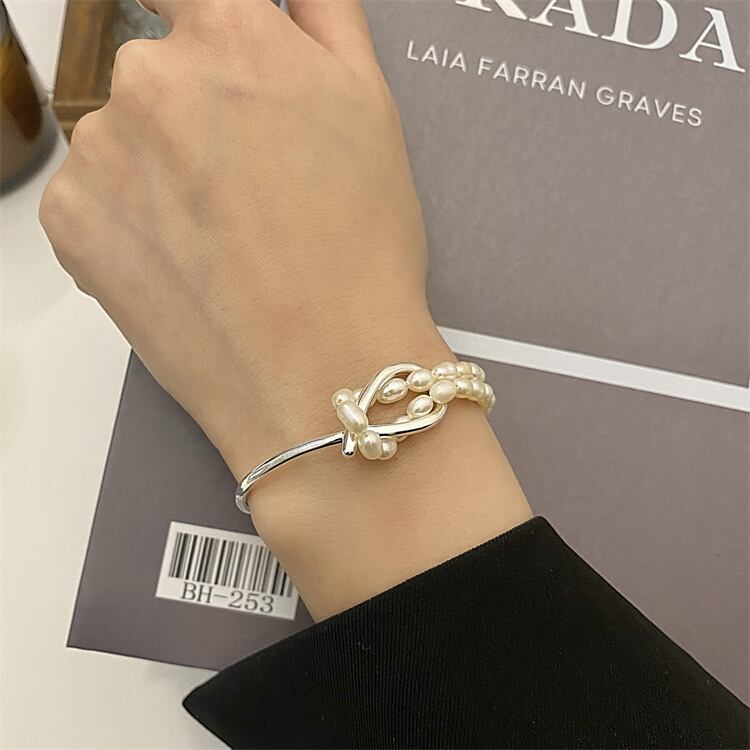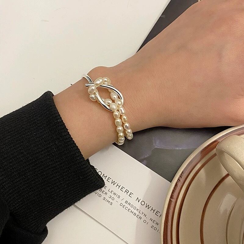 結び目が可愛い半分淡水真珠のブレスレットが手元をエレガントに魅せてくれるアイテムです♡