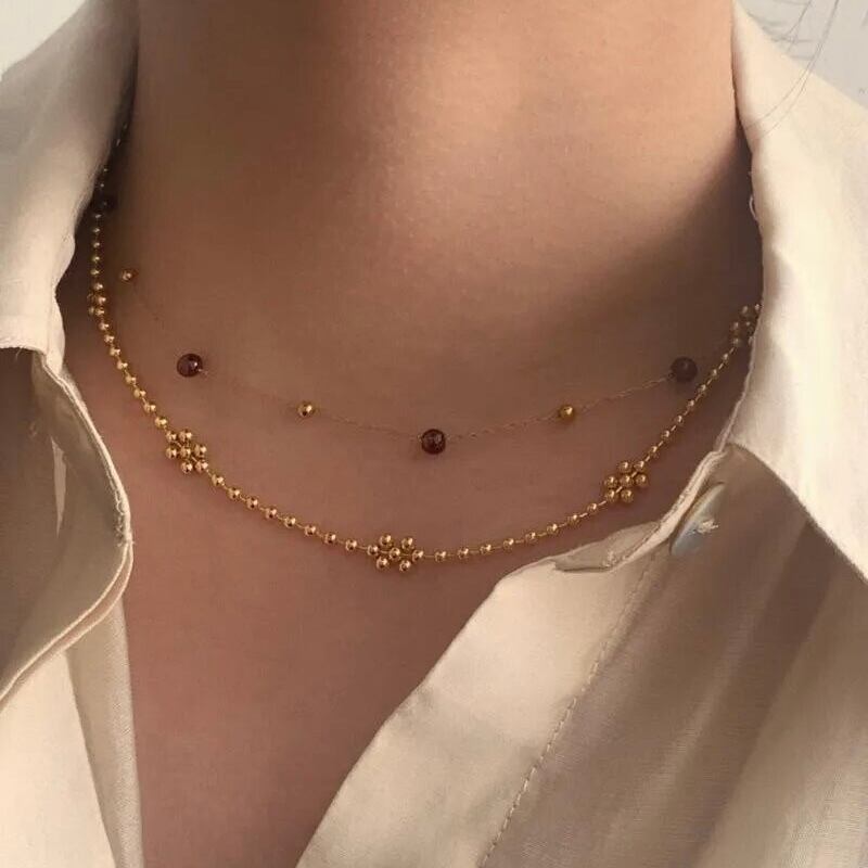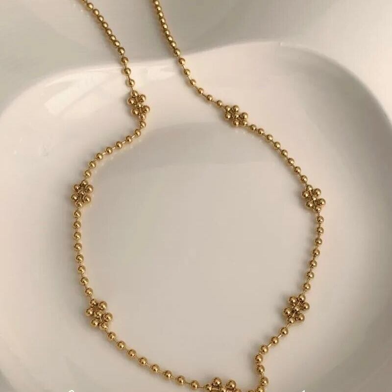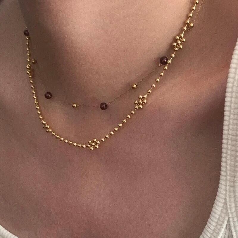 所々ポイントにビーズが重なってお花のような形になっていてシンプルだけど存在感のあるアイテムになります♡