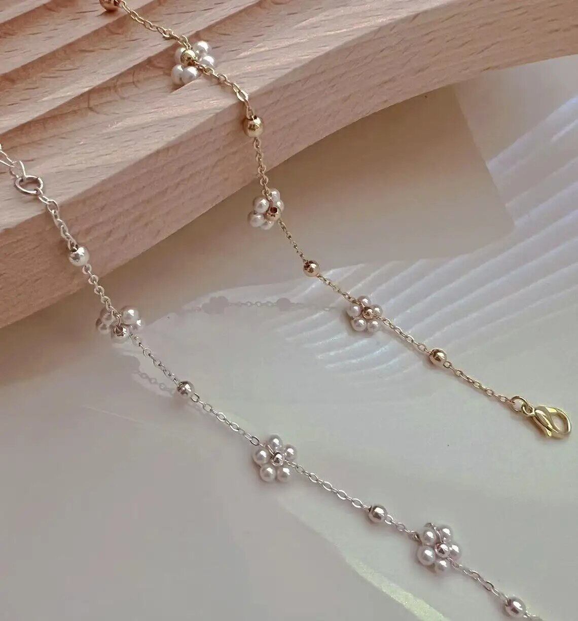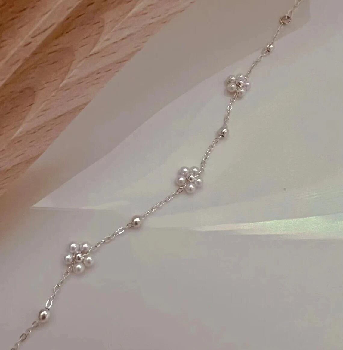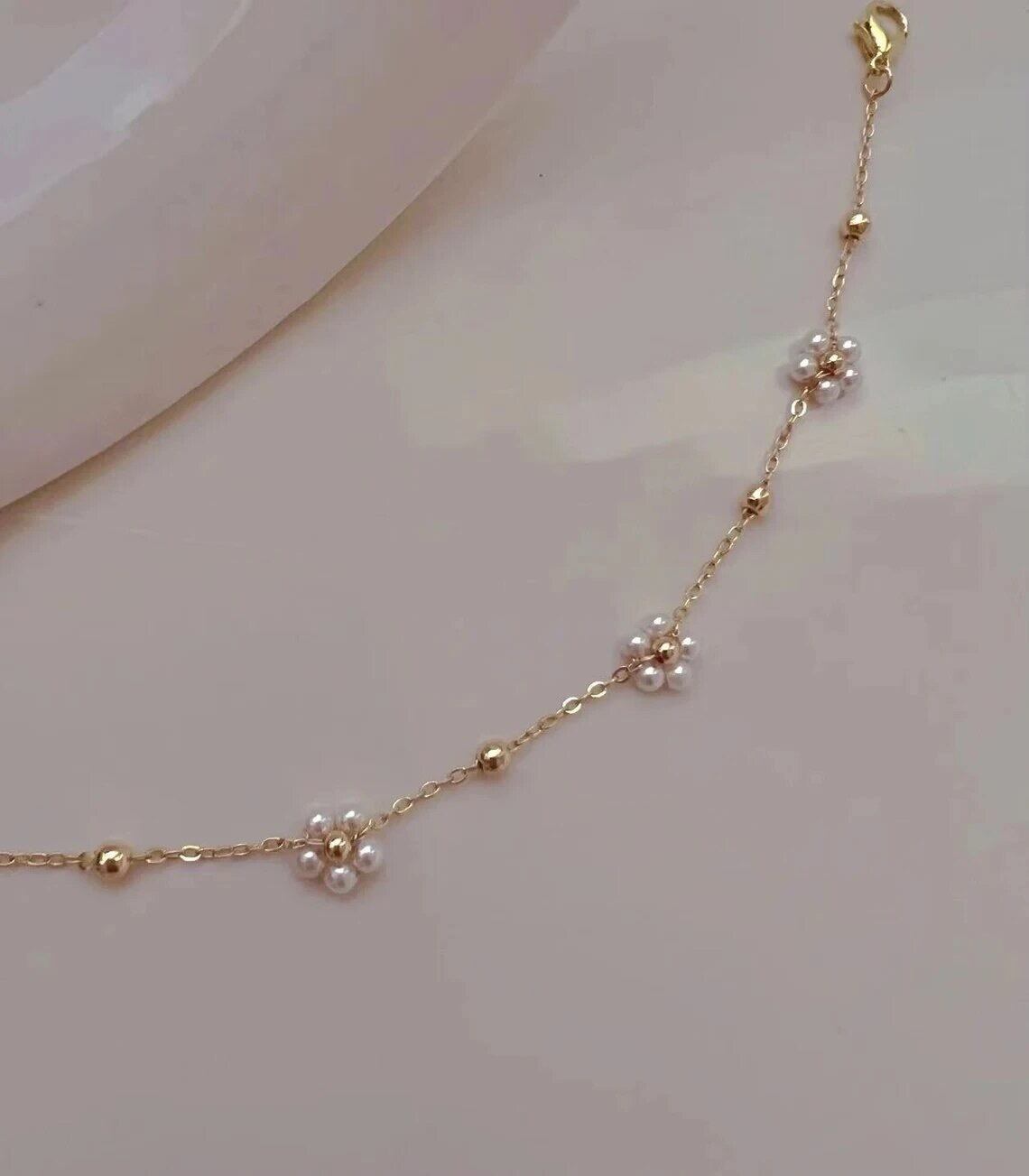 華奢なデザインにお花のパールが付いた感じがポイントになって可愛いブレスレットです♡