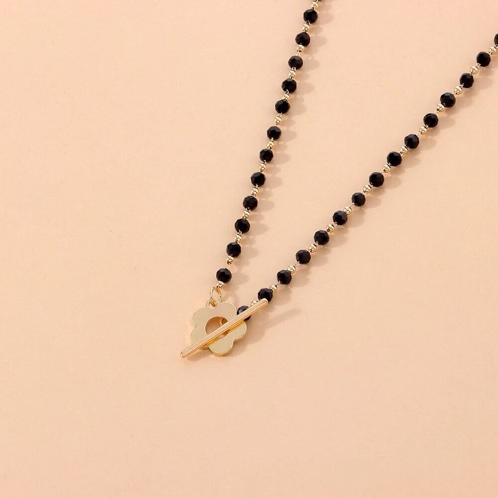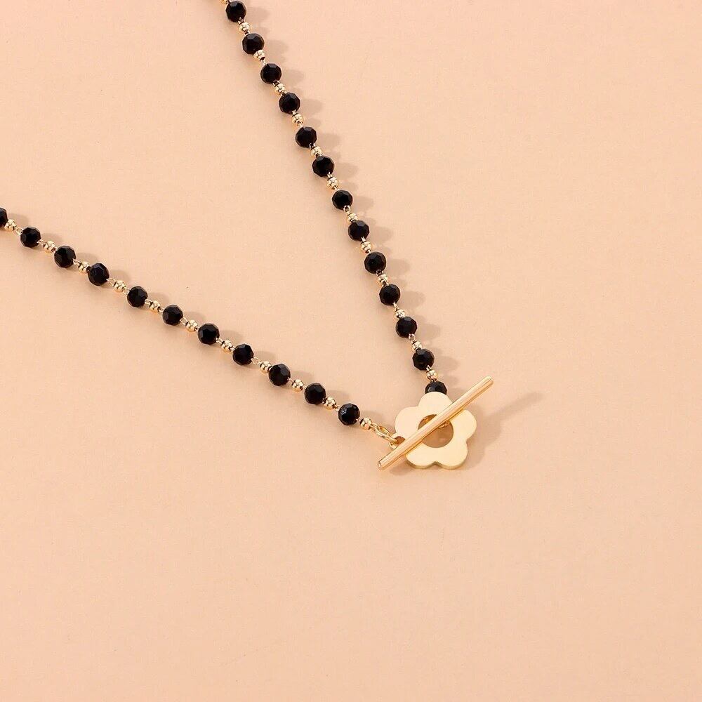黒のビーズとゴールドの花のコントラストが可愛い♡花の形をの所に差し込んで留まるタイプのチョーカーになります♡