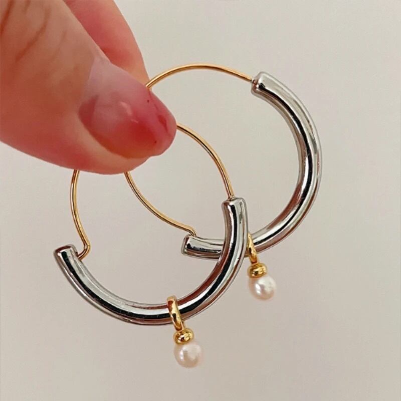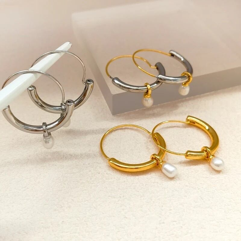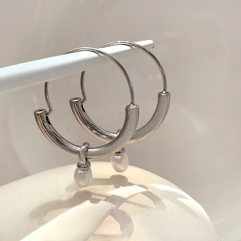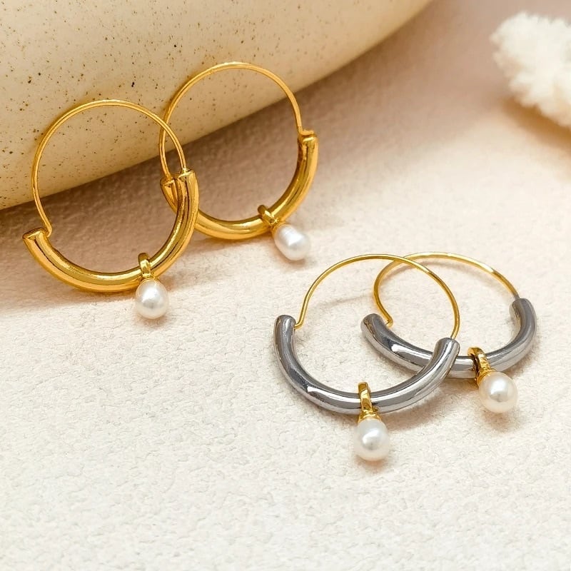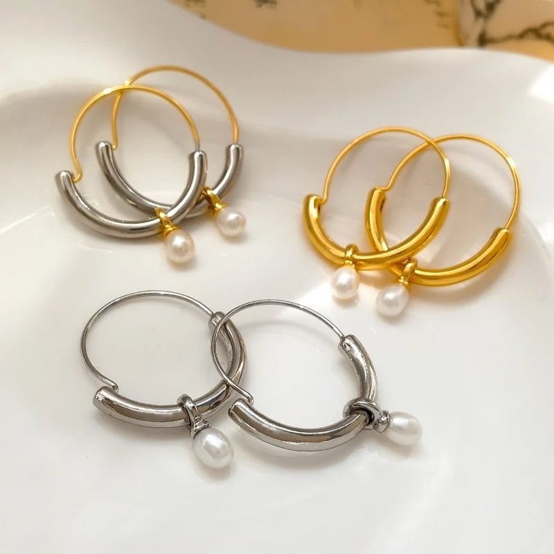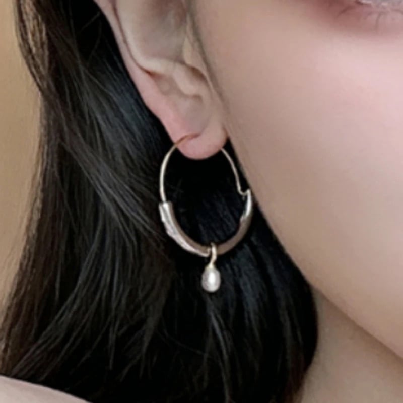 フープリングにパールがついてゆらゆらと揺れます♡大ぶりですがシンプルなコーデにもとってもオススメです♡